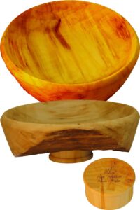 My second item is about 8″ diameter by 4″ height, walnut finished with wipe-on poly”